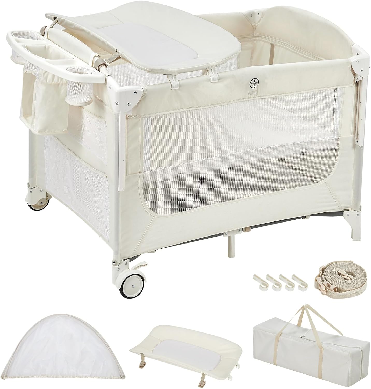- 【快適な眠りをサポート】 赤ちゃんの肌にやさしい素材を採用。通気性に優れた柔らかなマットで、一年を通して快適にご使用いただけます。さらに、周囲を囲むメッシュガードは柔らかな素材を使用し、赤ちゃんの安全と快適性を考慮しました。蚊帳は取り付けまたは取り外しができ、赤ちゃんにより安らかな睡眠を与えることができます。