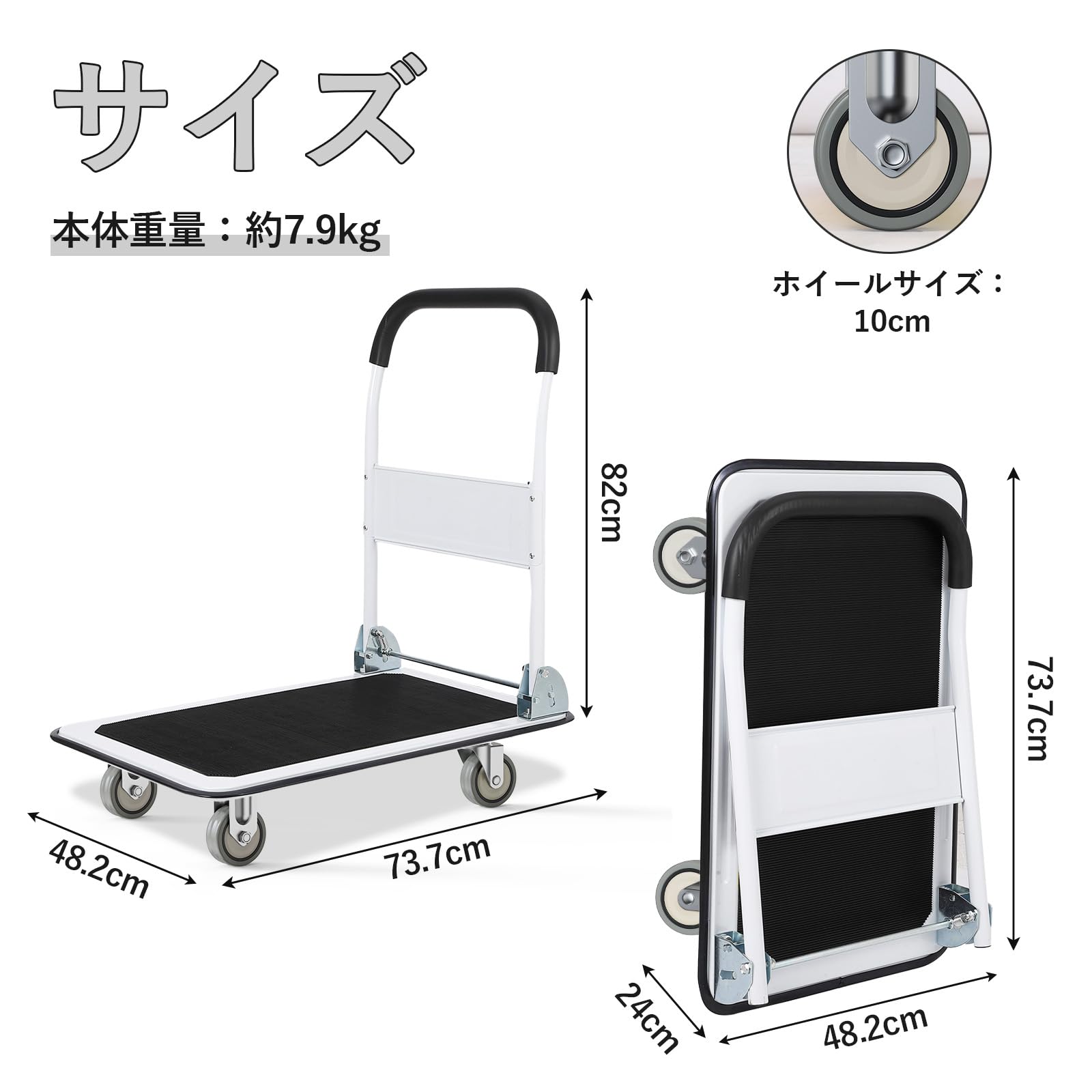 • 【商品詳細&安心保証】サイズ :約48.3cm×73.7cm×82cm、折りたたみ時サイズ:約48.3cm*24cm*73.7cm、耐荷重:150kg、本体重量:約7.9kg。材質:スチール、ゴム。一年保証付き、なにかございましたらいつでもお問い合わせください。適格請求書を発行することができますので、必要があればメールでお知らせください。