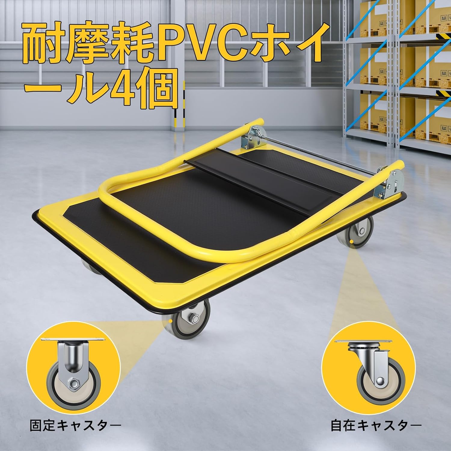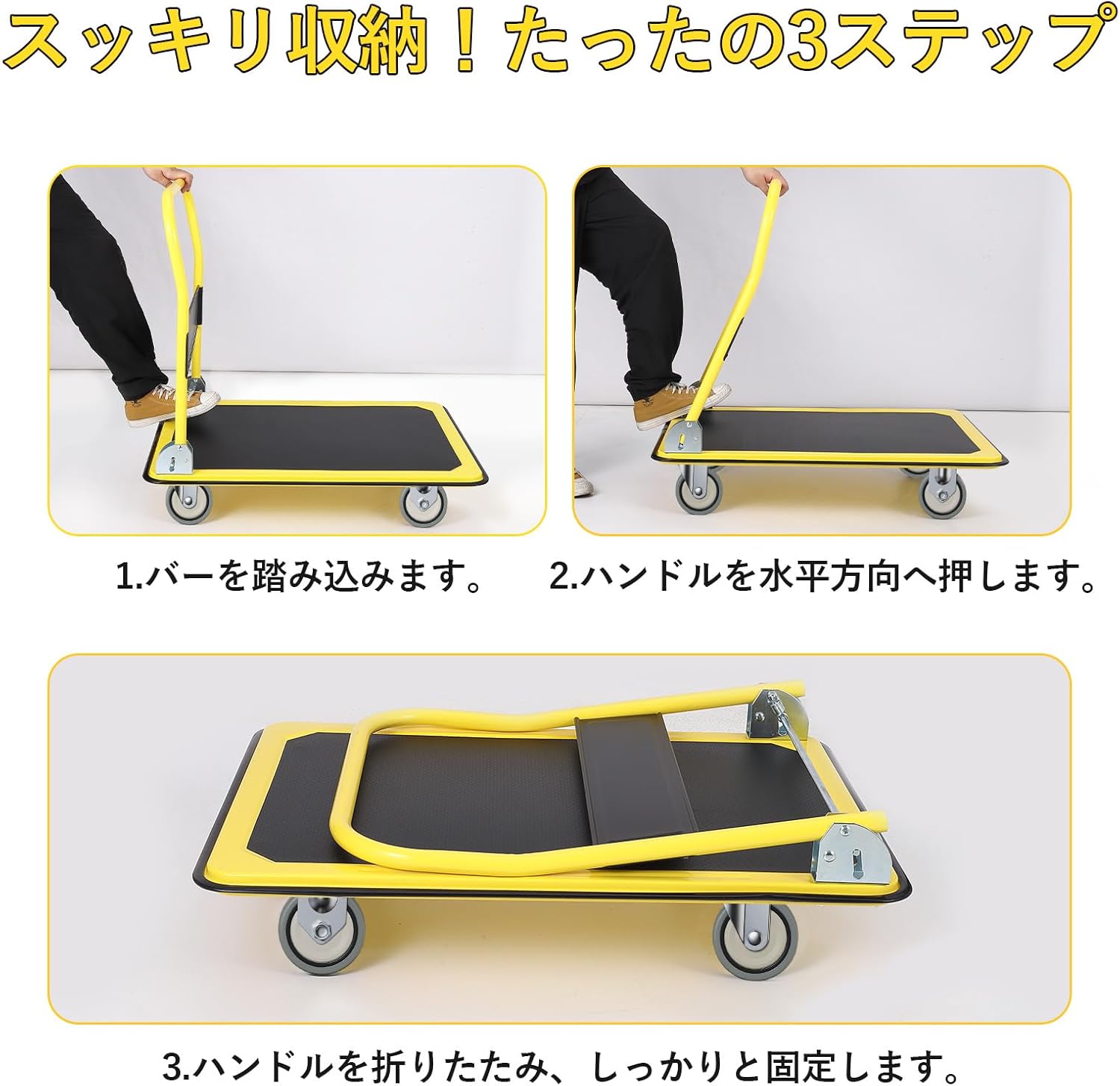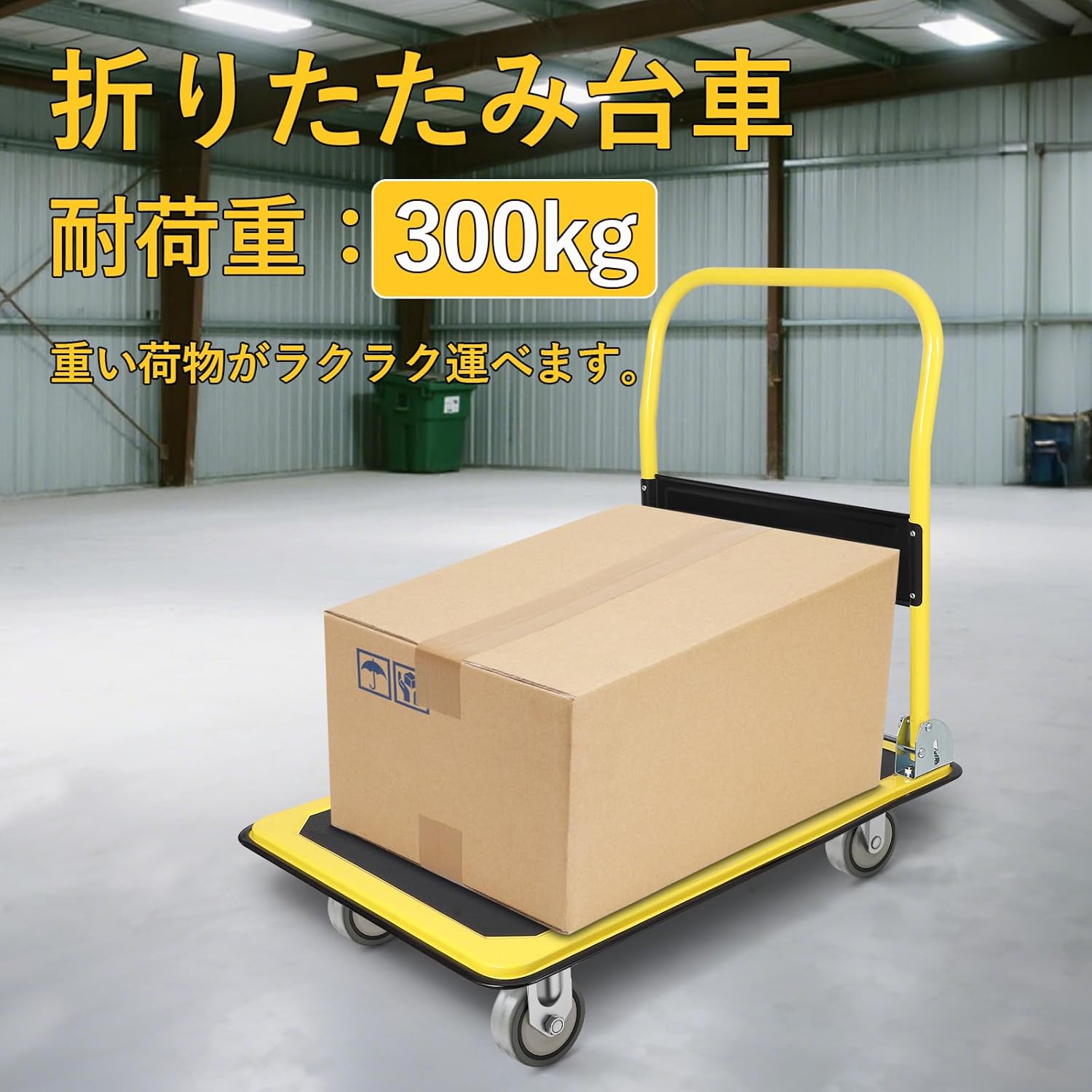 折りたたみ式のコンパクト設計で場所を取らず、耐荷重300kg・大容量・高品質で耐久性抜群! 家庭や倉庫で荷物運搬に、お手軽にお使いいただけます 。