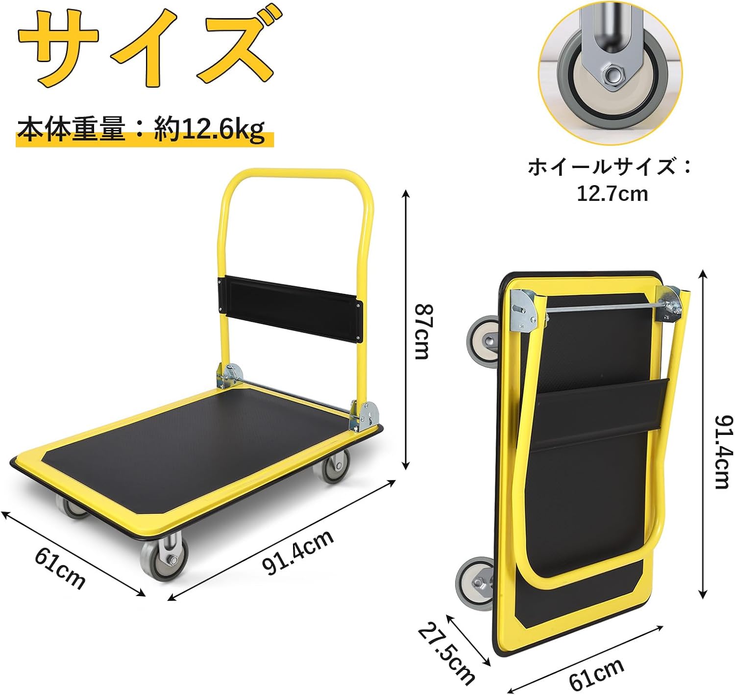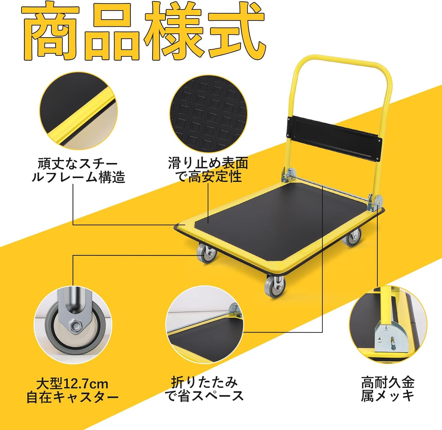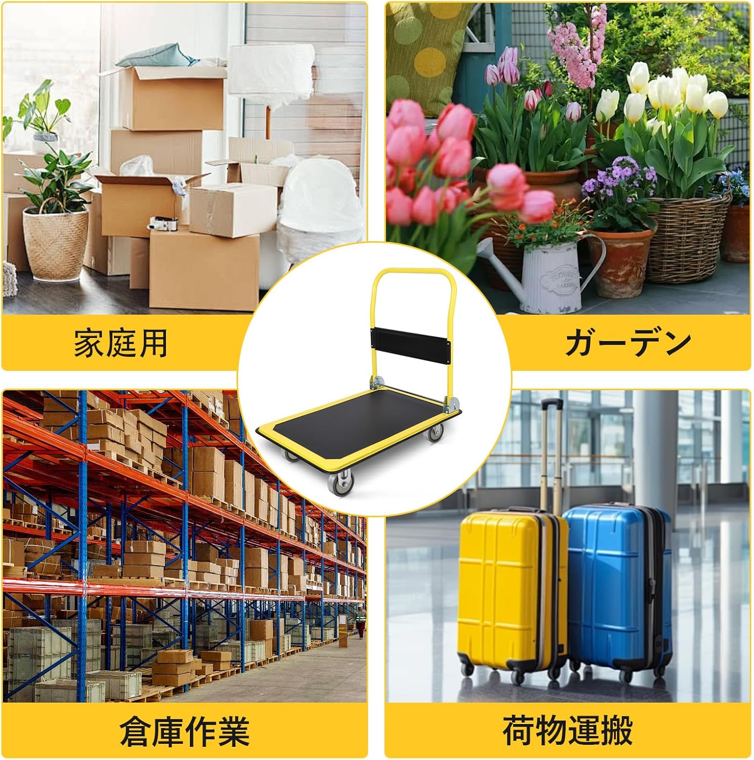 折りたたみ式のコンパクト設計で場所を取らず、耐荷重300kg・大容量・高品質で耐久性抜群! 家庭や倉庫で荷物運搬に、お手軽にお使いいただけます 。